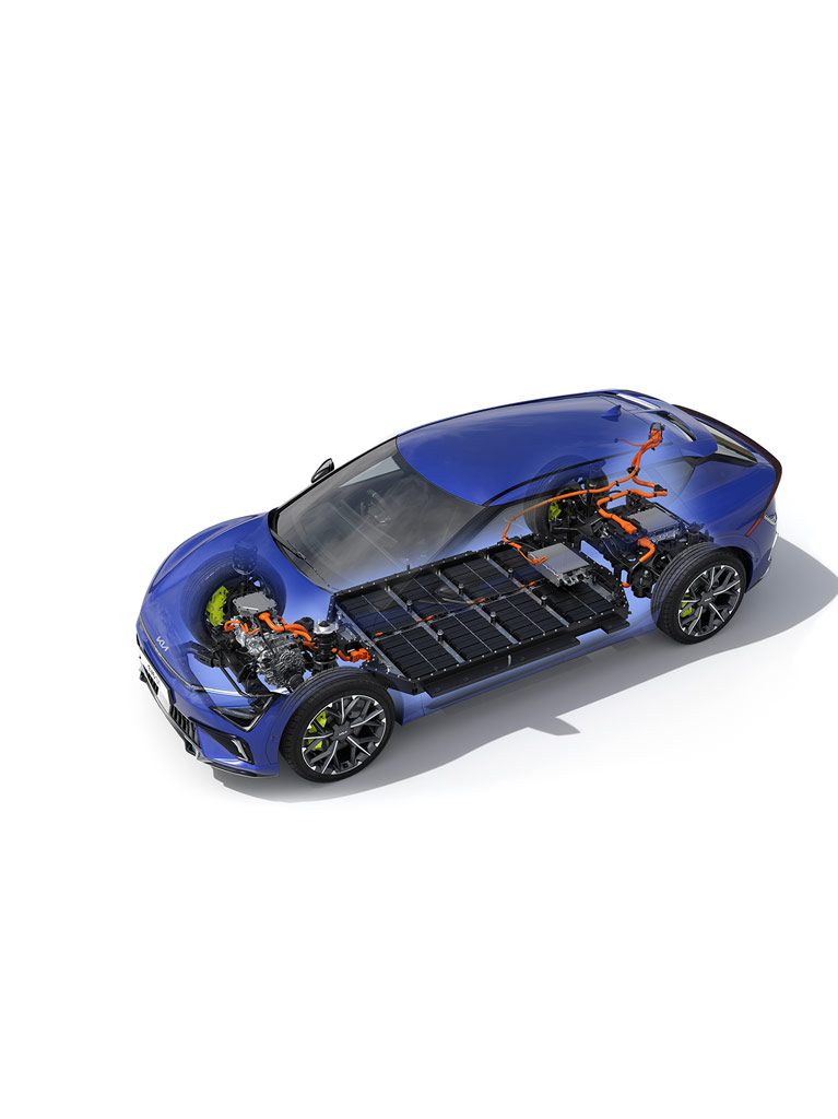 Der neue Kia EV6 GT wurde entwickelt, um dich in jeder Hinsicht weiterzubringen. Freu dich auf längere Fahrten, mehr Platz und ein angenehmes, ausgewogenes Fahrerlebnis. Der lange Radstand und die flache Konstruktion der Electric Global Modular Plattform (E-GMP) bieten eine geräumige Kabine mit loungeartigem Komfort für alle an Bord. Die bahnbrechende E-GMP sorgt zudem für athletische Leistung und beeindruckende Reichweite – und das bei einem stabilen, ruhigen Fahrgefühl selbst bei hohen Geschwindigkeiten.