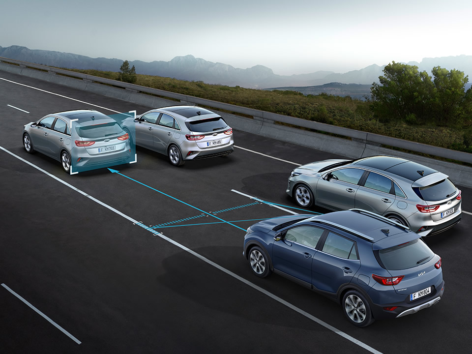 • Querverkehrwarner zur Erkennung von Fahrzeugen im toten Winkel beim Querausparken mit Notbremsfunktion (Rear Cross-Traffic Collision-Avoiding Assist, RCCA)